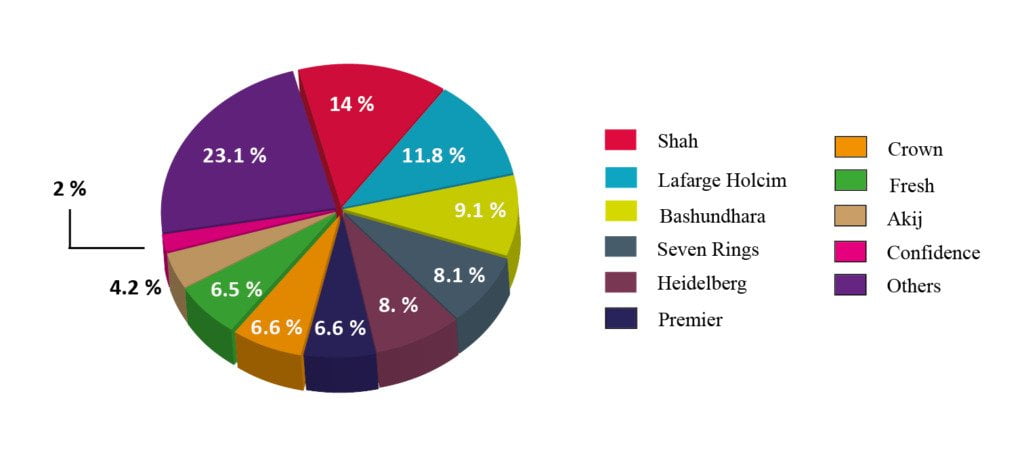 Despite having the presence of multinational companies, local manufacturers dominate the domestic market. Shah Cement, a concern of Abul Khair Group, is the market leader which has the country’s largest cement producing plant. The company has a production capacity of 10 million metric tons per year. Its plant is thought to be one of the most technologically advanced in the whole country. The company has already installed the world’s largest Vertical Mill to offer premium quality cement products to growing domestic customers.
