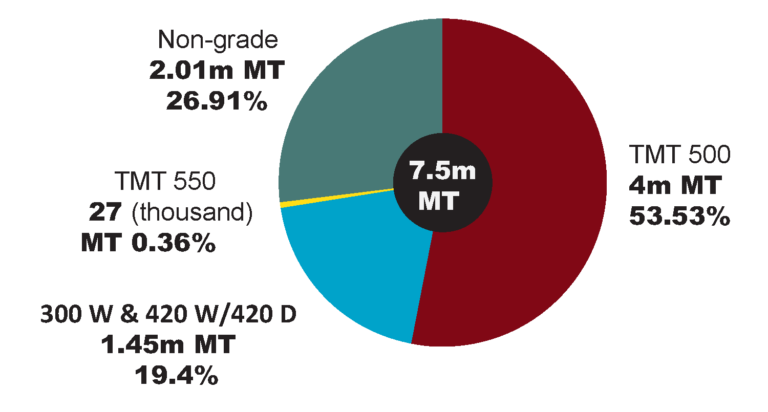 TMT 500 (grade 72.5) is the most popular products in Bangladesh – total demand is 4 million MT per year – and a significant of steel used in the country is non-graded rebar which is expected to decline in the coming years as consumers are becoming more concern about the quality of the rebar they use for the construction.