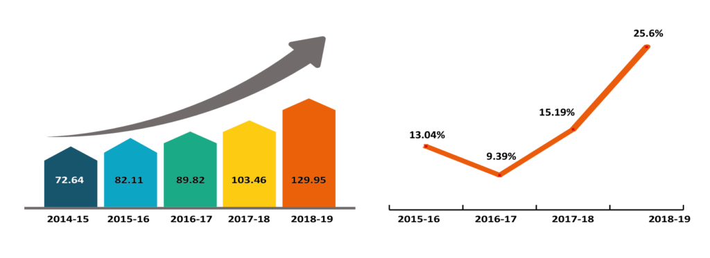 Domestic demand for pharmaceuticals has increased significantly from just BDT 102 billion in 2013 to around BDT 230 in 2019. The sector has achieved a compound annual growth rate (CAGR) of 13.90% during the last five years. Demand is mostly driven by the fact that Bangladesh has a population of 160 million people.