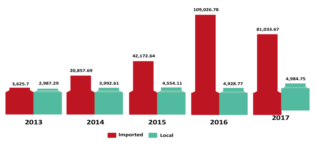 Raw material Import vs Local Production (BDT mn)