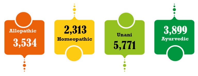Currently, pharmaceutical industry has around 3,534 generics of allopathic medicine, 2,313 registered Homeopathic drugs, 5,771 registered Unani Drugs and 3,899 registered Ayurvedic drugs.