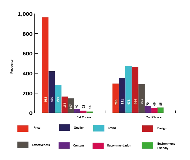 Additionally, they give the least importance to environment-friendly products. Once the price point is managed, the second most important feature is the brand. Thus, consumers are willing to buy branded items only if the price is favorable.