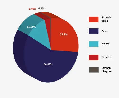 To get a picture of the attitudes and well-being of Bangladeshi consumers, we also asked the respondents whether they are happy in life and whether they believe that there is an improvement in their lives as time passes. Our findings show that more than 84% of the surveyed Bangladeshi consumers consider themselves content or happy with their current life (Figure 28). Majority of urban, semi-urban and rural respondents agree that they are happy with their current life and that they will have a better life in the next two years (Figure 29).