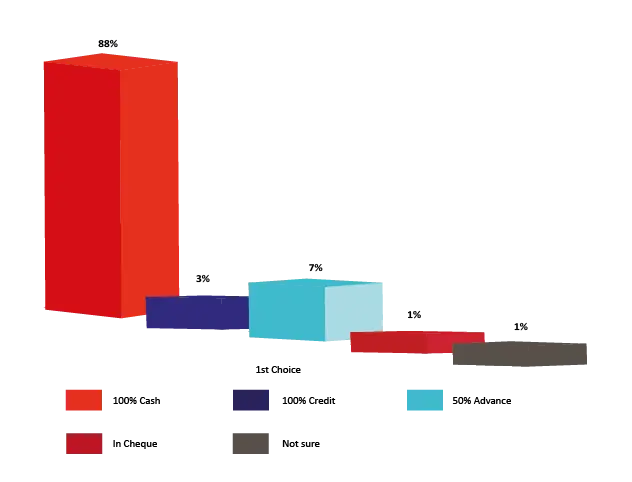 Since the number of people employed in the informal sectors is an overwhelming 87.5 percent of the total labour force (Labour Force Survey 2010) and majority of them do not have a bank account which could explain why cash payment is the most preferred choice.